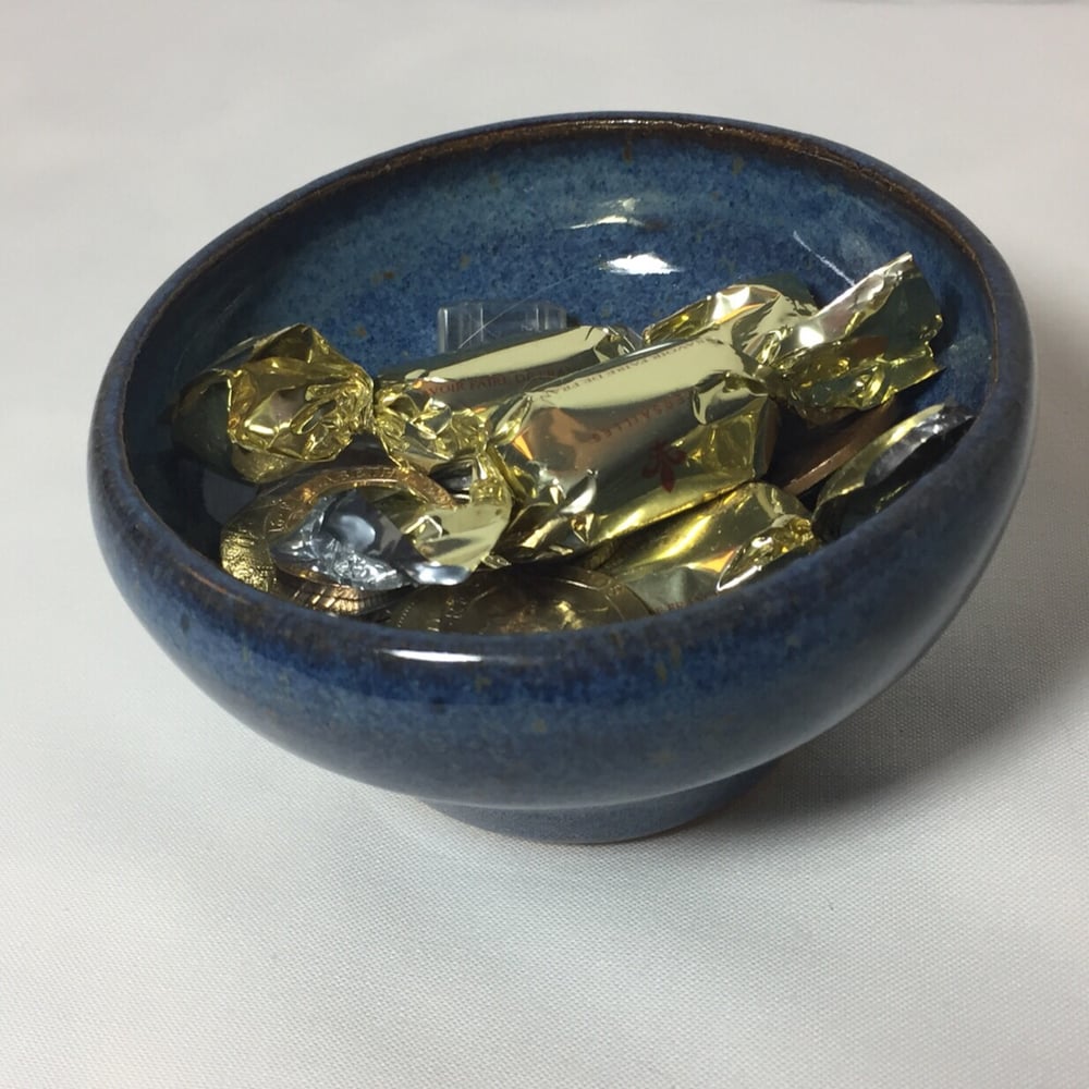 Limited edition! This small hand-thrown bowl is 2” tall and 3.75” wide. Great place to store loose change or serving snacks!